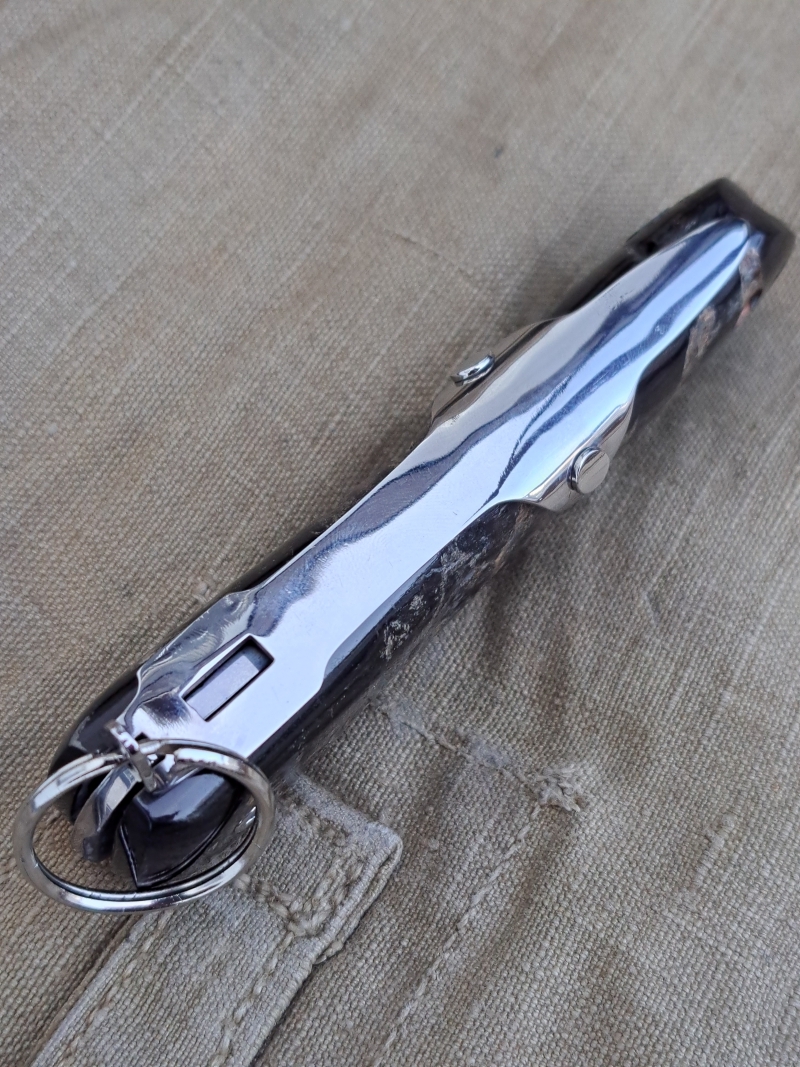 Erleben Sie mit dem Citadel Le Bugue Lock Horn ein Taschenmesser, das die Brücke zwischen traditioneller Handwerkskunst und moderner Funktionalität schlägt. Dieses exklusive Stück ist nicht nur ein Werkzeug, sondern ein Statement für Ästhetik und Belastbarkeit.