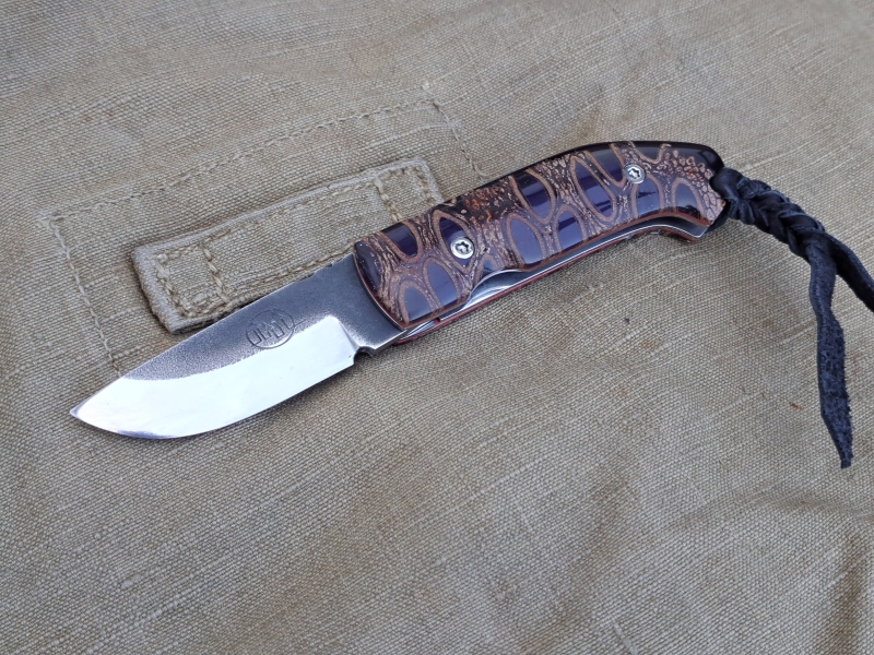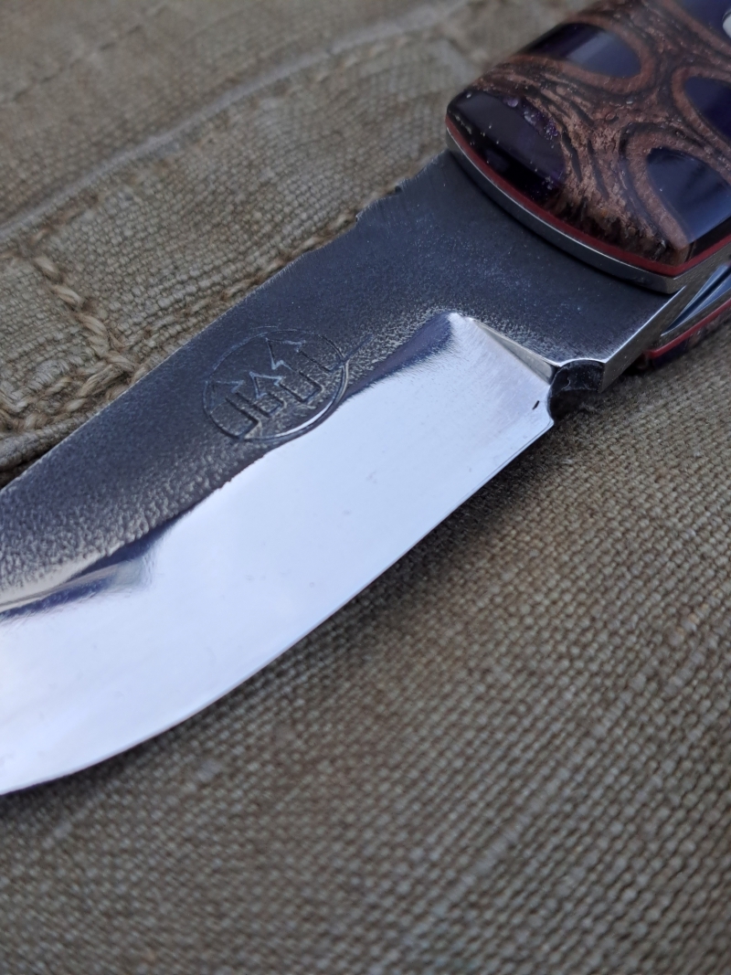 Sequenziell gehärteter DNH7 Stahl: Die Klinge ist von Hand geschmiedet. Durch die differenzielle Härtung entsteht eine extrem scharfe Schneide (ca. 60 HRC), während der Klingenrücken für maximale Zähigkeit flexibel bleibt.