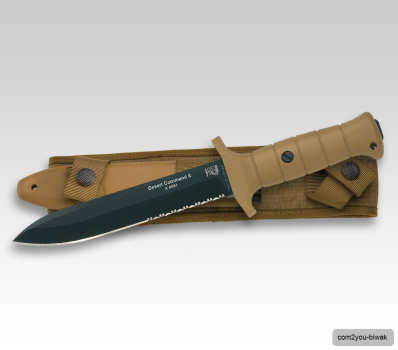 Auf Anregung einsatzerfahrener Soldaten hat Designer Dietmar Pohl das Modell KM3000 mit Spear Point-Klingenspitze entwickelt, das dem Soldaten ein wesentlich höheres Anwendungsspektrum bietet. Um auch in Wüsteneinsatzräumen bestehen zu können, bietet Eickhorn das Messer zusätzlich in Coyote-farbener Ausstattung als DESERT COMMAND II an. Böhler N695 Stahlklinge (HRC 57) mit schwarzer Kalgard-Beschichtung und partiellem Wellenschliff. Scheidensystem entsprechend Modell DESERT COMMAND I. Gesamtlänge 30,2 cm. Klinge 17,2 cm. Klingenstärke 5 mm. Gewicht 330 g.