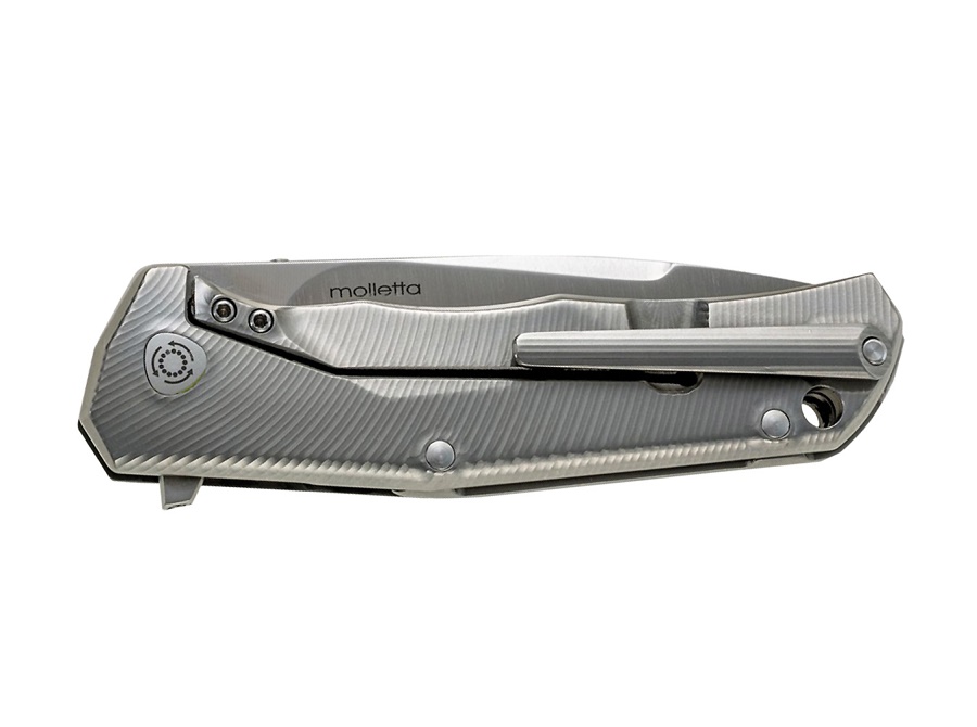 "Messer des Jahres" auf der Blade Show in Atlanta zu werden, ist nur wenigen vergönnt. Die Messlatte hierfür liegt extrem hoch, und die Verleihung dieses Prädikates ist eine große Ehre. 2015 wurde diese Ehre dem Lionsteel T.R.E. zuteil, das nicht nur ein besonders gelungenes Designstück darstellt und sich zudem durch die typische Qualität und Praxistauglichkeit auszeichnet. Einzigartig ist das neue Patent, mit dem das T.R.E. den unterschiedlichsten Anforderungen an die Bedienung eines Messers gerecht wird, und das vereint in einem einzigen Messer. Der Daumenknopf ist so konstruiert, dass er demontiert werden kann, ohne eine Lücke in der Klinge zu hinterlassen. Doch echtes Neuland bietet Lionsteel mit dem ebenfalls demontierbaren Flipper. Die hochwertige Holzverpackung enthält nicht nur die notwendigen Werkzeuge, um diese beiden Bauteile sowie den Clip demontieren zu können, sondern auch Ersatzschrauben zum Verschließen nicht benötigter Gewindebohrungen sowie Fächer zur Unterbringung demontierter Kleinteile. So kann das Messer mit Flipper, mit Daumenknopf, mit keinem oder mit beiden Einhandöffnern getragen werden. Die aus M390 gefertigte Klinge ist kugelgelagert (IKBS) und öffnet butterweich. Verriegelt wird sie per Titan-Framelock. Der Titan-Clip und der Titan-Backspacer sind titangrau und ebenso dreidimensional gefräst wie der Titan-Griff selbst und stellen für sich schon kleine Kunstwerke dar.