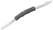 Cold Steel präsentiert mit dem Modell Pocket Bushman ein Messer mit einer ungewöhnlichen Klingenarretierung, dem von Andrew Demko entwickelten Ram-Safe-Mechanismus. Die Verriegelung besteht aus einem langen, im Griff liegenden Metallkeil, der die Klinge im geöffneten Zustand sicher arretiert. Zum Einklappen wird der aus dem Heft herausragende Teil nach hinten gezogen, wodurch die Verriegelung gelöst wird und das Messer geschlossen werden kann. Die Klinge des sehr robusten Messers ist aus rostfreiem 1.4116 Krupp-Stahl gefertigt und umgebogen, wodurch scharfe Kanten vermieden werden. Clip und Öffnungsschraube können beidseitig montiert werden. Somit ist das Messer sowohl für Rechts- und Linkshänder geeignet.