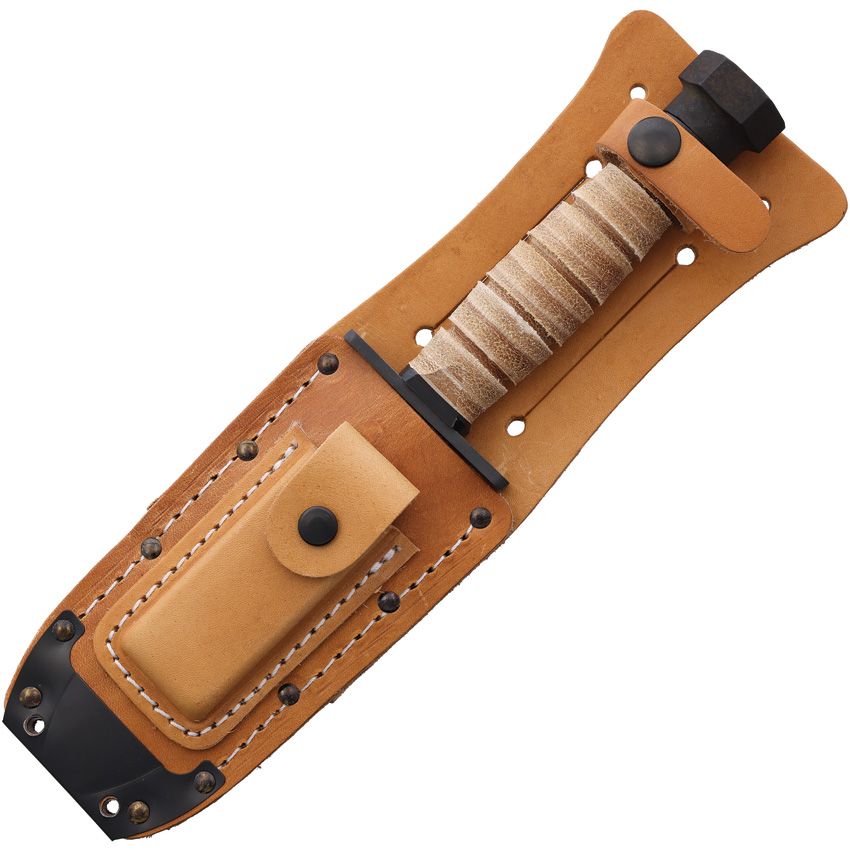 Geliefert wird das Ontario 499 mit einer hochwertigen, robusten Lederscheide. Das Besondere: In der integrierten Tasche befindet sich bereits ein kleiner Schleifstein, damit Ihre Klinge auch auf langen Touren immer einsatzbereit bleibt.