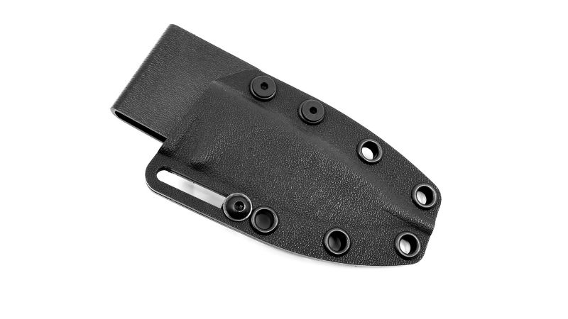 Lieferumfang und Tragekomfort: Das Messer wird mit einer passgenauen Kydex-Scheide geliefert. Diese ermöglicht vielseitige Trageoptionen – als Gürtelmesser, am Rucksack oder als Neck Knife.