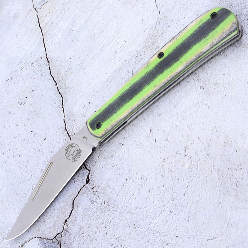 Das White River Trailhead Trapper ist die moderne Interpretation eines amerikanischen Klassikers. Als klassisches Taschenmesser (Slipjoint) verzichtet es auf eine mechanische Verriegelung und setzt stattdessen auf eine präzise Rückenfeder, die die Klinge sicher offen hält. Mit seinem Griff aus zweifarbigem Grün-Schwarz G10 und der exzellenten Verarbeitung ist es das ideale Gentleman-Messer für Puristen.